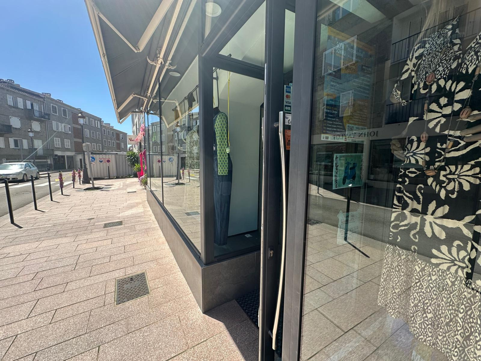Opportunité ! Situé au centre ville de Porto-Vecchio, spacieux local commercial de 112 m2 entièrement climatisé avec deux grandes vitrines, une réserve attenante et un wc indépendant.